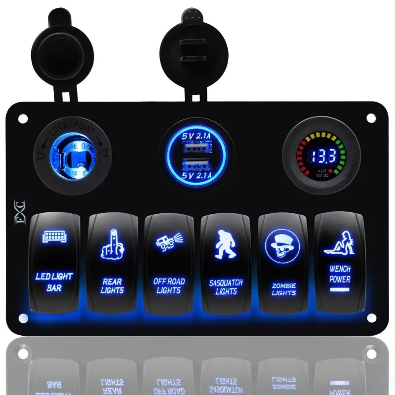 Buy Dual USB Charging Waterproof 6 Gang Blue LED Car Caravan Marine Boat RV Rocker Switch Panel Circuit Breaker Overload Protection up to 2019-03-31, and You will Save $16.97 or 30%, because you just pay $39.59 instead of $56.56