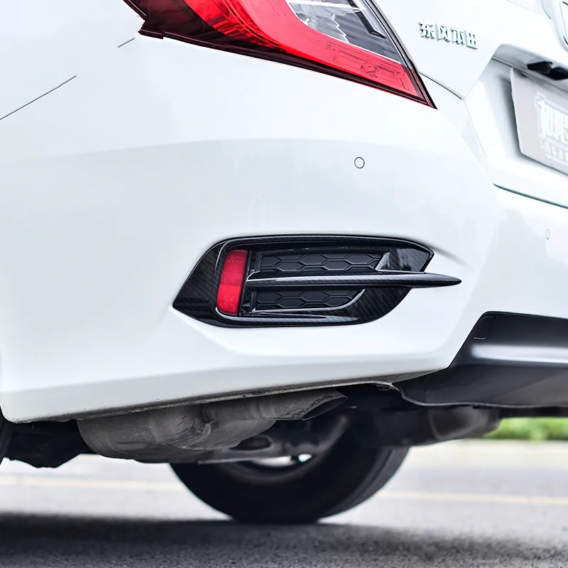Pictures of KOUVI ABS Chrome Carbon Front Rear Fog Light Lamp Cover Trim Fit For Honda Civic Sedan 10th 2016 2017 2018