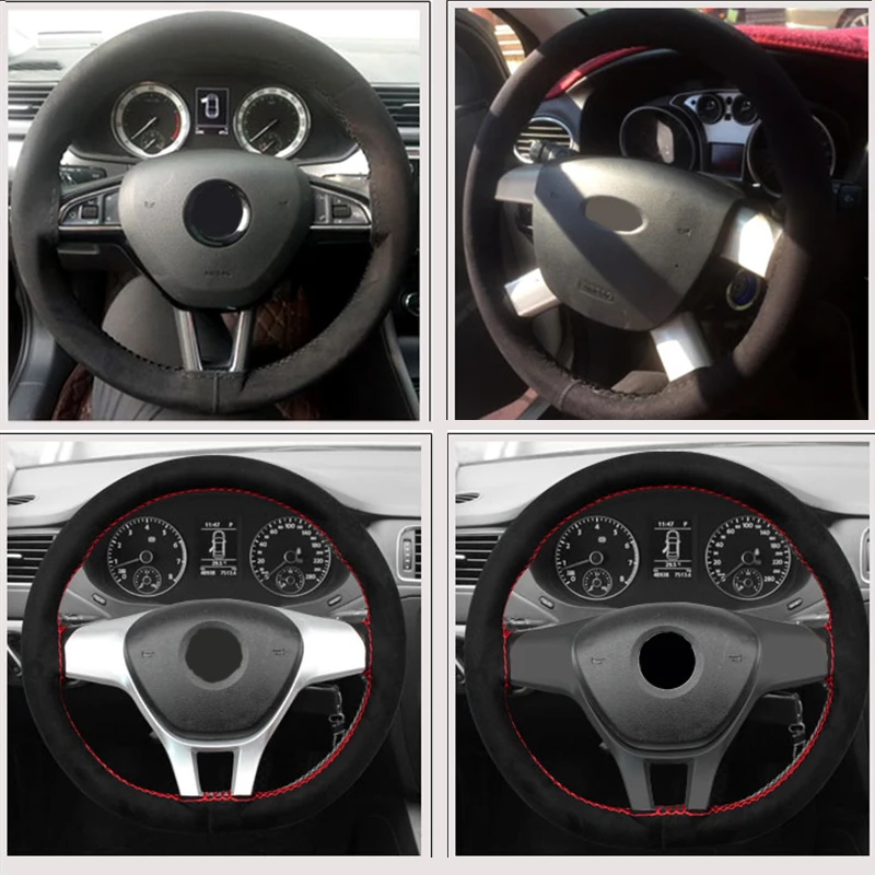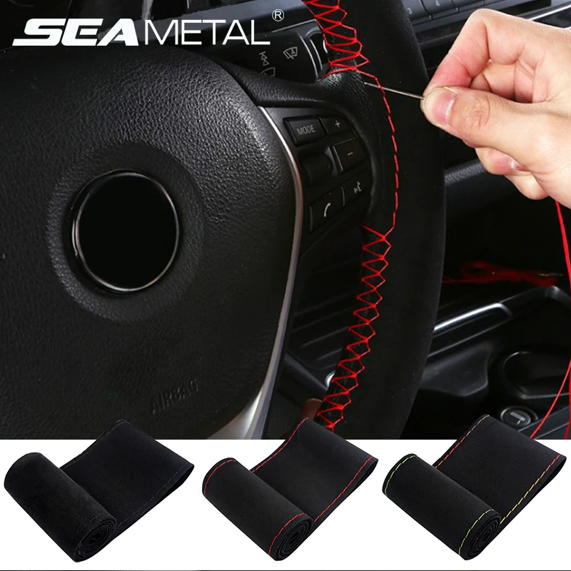 Gallery for 38cm DIY Braid On Steering Wheel Car Steering Wheel Cover With Needles and Thread Artificial Leather Sewing Auto Car Accessories